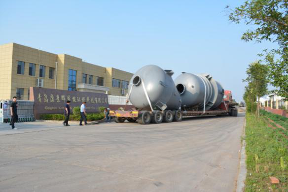 6月26日,青島康景輝節能環保科技有限公司設計、生產、制造的三效鈦材蒸發器裝貨完畢,如期發往青島某化工(集團)有限公司。